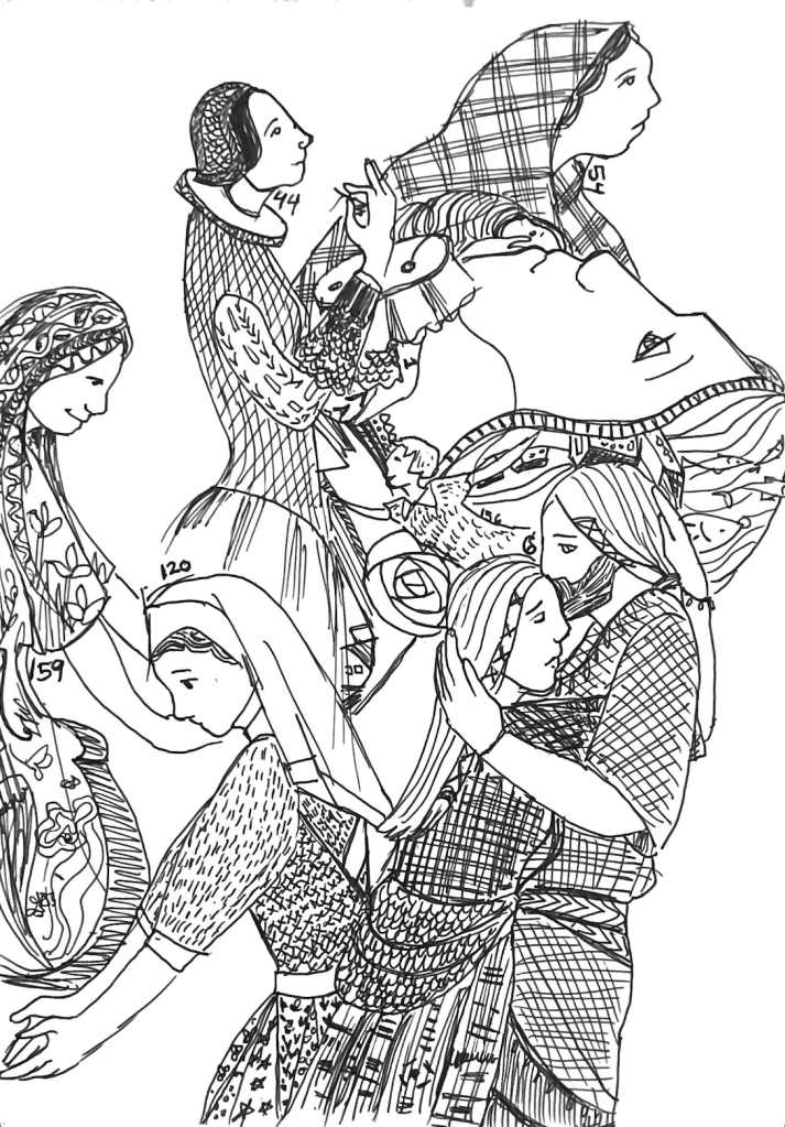 Upon a visit to The Great Tapestry of Scotland in Galashiels, I was overcome by the immense beauty and presence of women in every single panel that caught my eye, even if they were doing the most mundane things. Embroidering, washing, waulking, healing, smiling, mourning. History isn’t history without all of that. Life givers, life sustainers, women are present through it all. When a baby is born, who nurses and holds the child to protect it? When the old and frail are close to death, who have so often been at the bedside nursing them into the beyond?